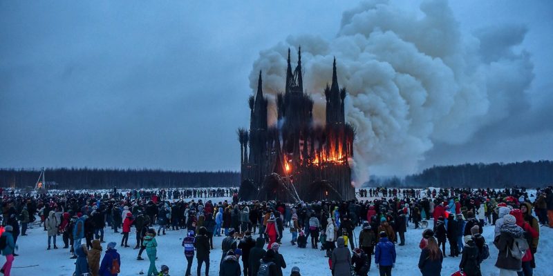 В прощеное воскресенье в калужской деревне Никола-Ленивец сожгли готическое строение из веток и деревянного мусора. Событие вызвало общественный резонанс: «архитектурная» форма по внешнему виду напоминала католический костел. Кто-то увидел в